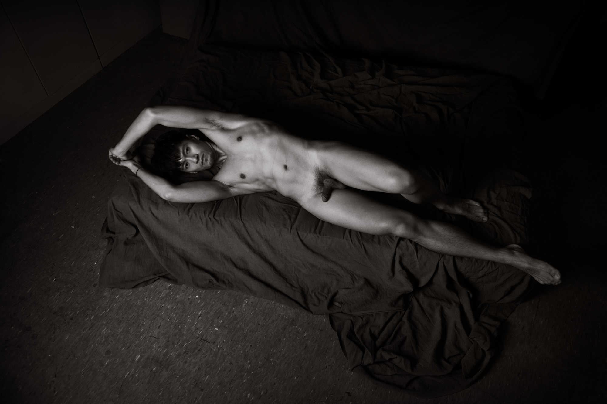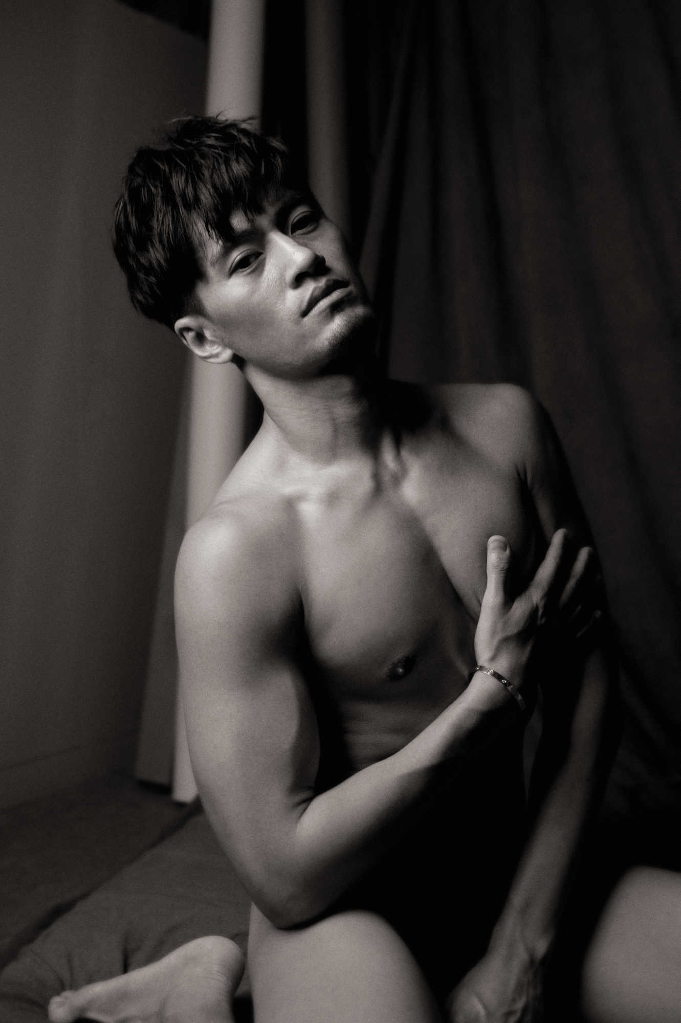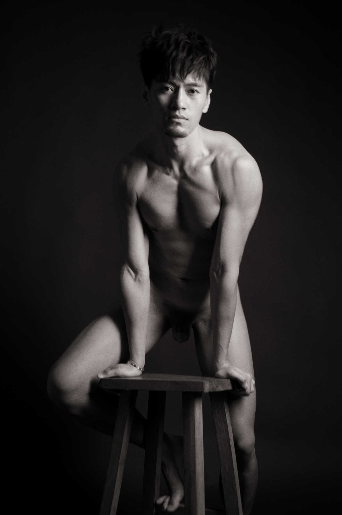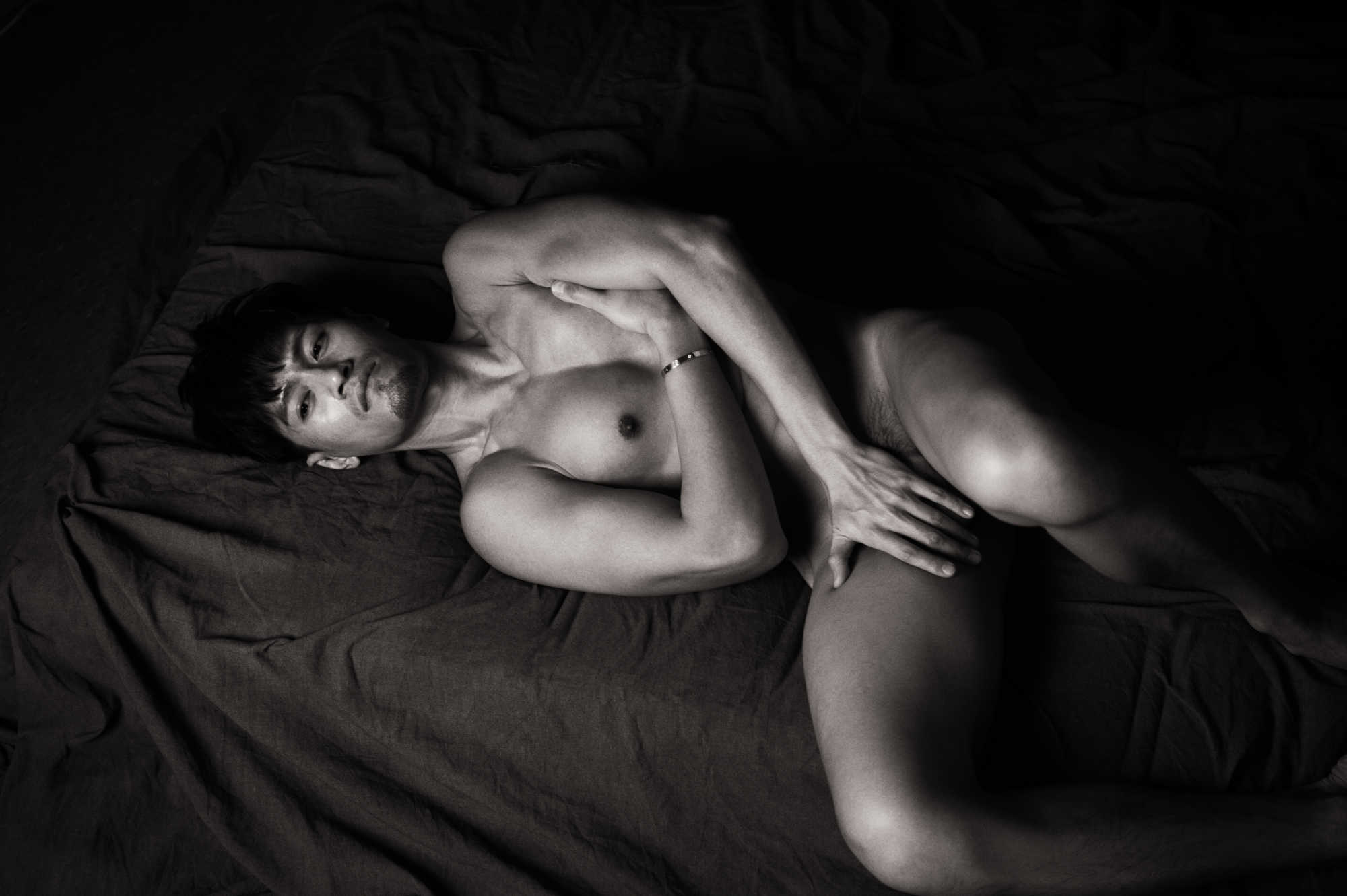 Photographed in 2016, I met Pop through social media channels. I believe I commented that he was very handsome, to which he modestly agreed. Originally from Taiwan, we agreed to a shoot in the studio using a mattress and dark draping material. With masculine handsome features not shy of showing it all, we seemed to make some beautiful images together.